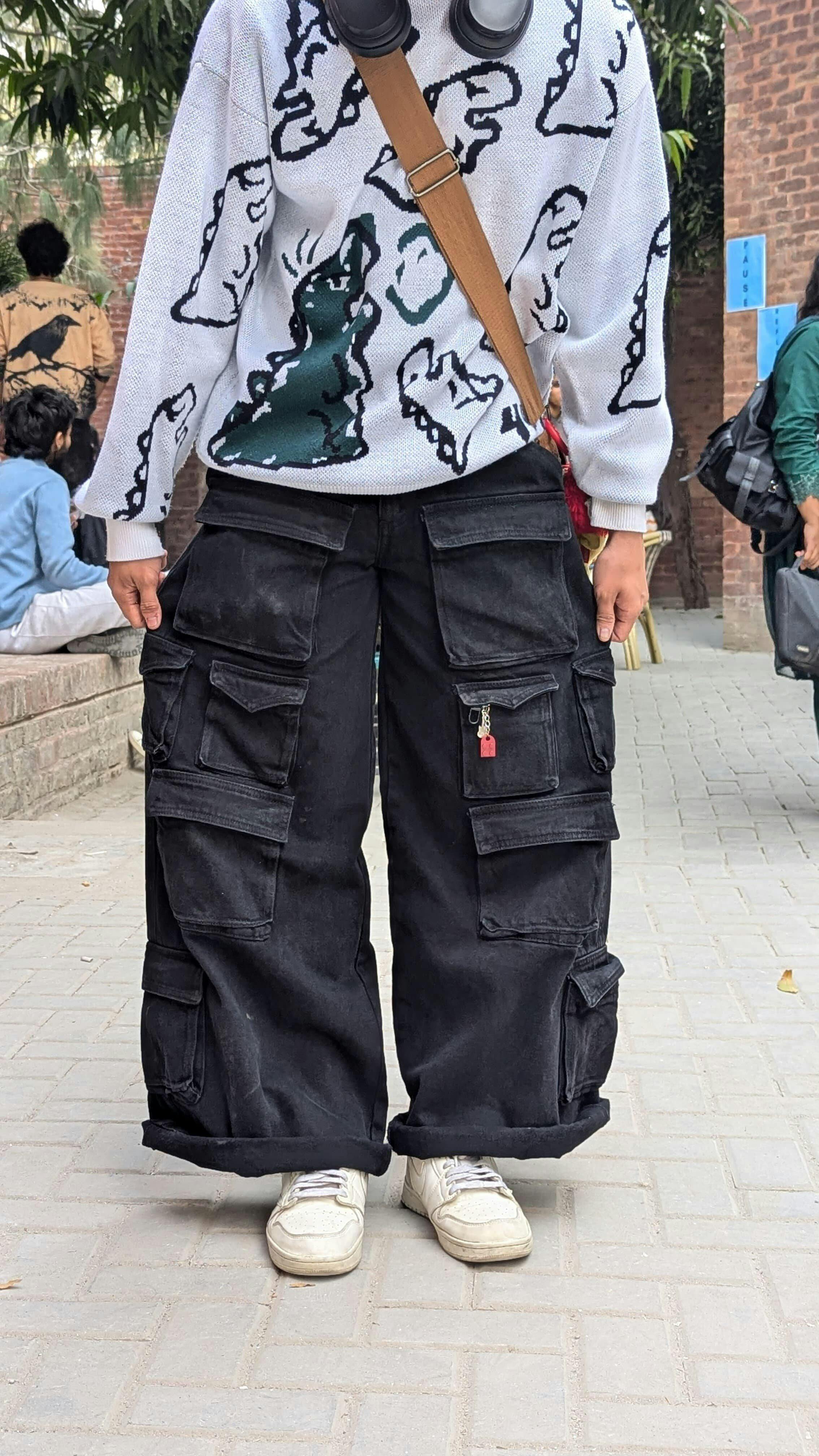 Design detail: Relaxed silhouette with extra room throughout the legs for a casual streetwear look, 14 pockets cargo with embroidery on back pockets.